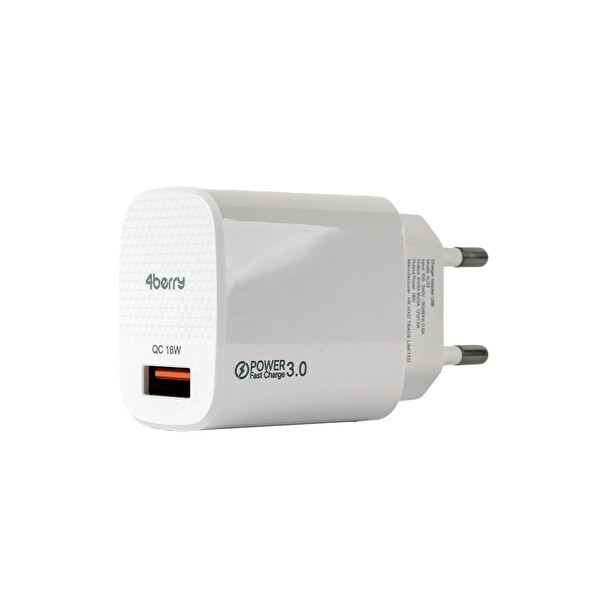 4Berry AU13 Hızlı Beyaz USB Duvar Şarj Adaptörü 3.0A 18W