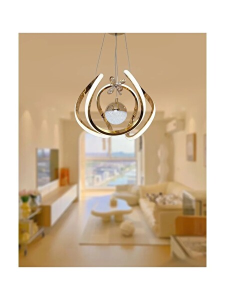 Avize Pazarı Kavis Modeli Sarı Kaplama Tek Toplu 3 Renk Modüllü Ledli Avize