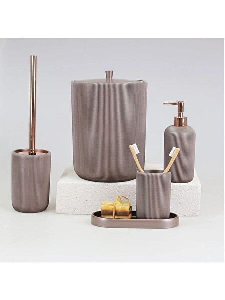 By Selim Lydia Taupe 5 Parça Polyester Banyo Seti