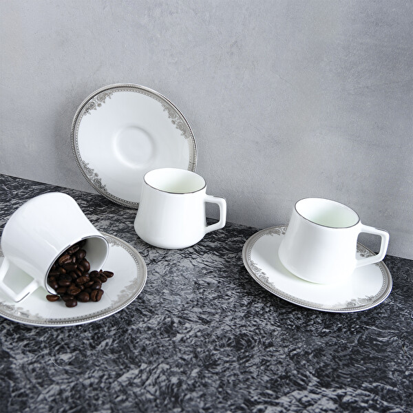 Evaliza Versailles Platin Double 6 Kişilik Kahve Fincan Takımı 130 ML