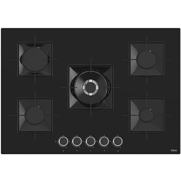 Ferre SS035 75 CM 5 Gözlü Woklu Siyah Cam Ankastre Ocak
