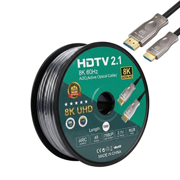 Fully 50 Metre 8K 60Hz ARC Fiber Optik HDMI Kablo 2.1v 7680x4320