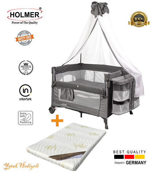 Holmer Coolstyle Cibinlikli Anne Yanı Oyun Parkı 70x110 CM Gri - Aloevera Yatak