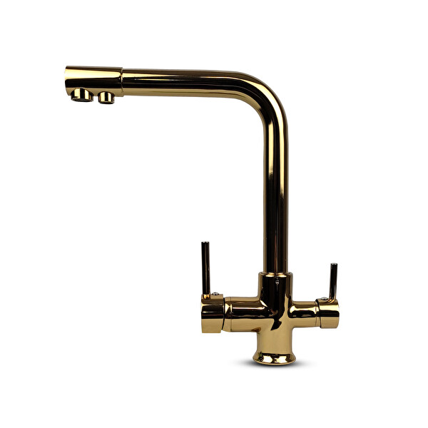 İdeal Mağaza Su Arıtma Cihazı İçin 3 Yollu Oval L Borulu Altın Musluk
