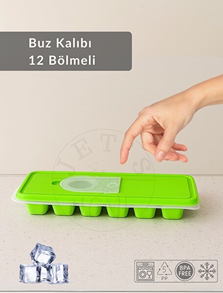 Jet's Home 12 Bölmeli Buz Kalıbı Esnek Silikon Buz Küpü BPA Free Kare Bas Parmak Buzluk 3x3 Yeşil