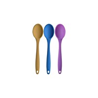Kitchen Design Lab Büyük Boy Yanmaz Yapışmaz Sarı Mavi Mor Silikon Kaşık Servis Seti 3 Adet