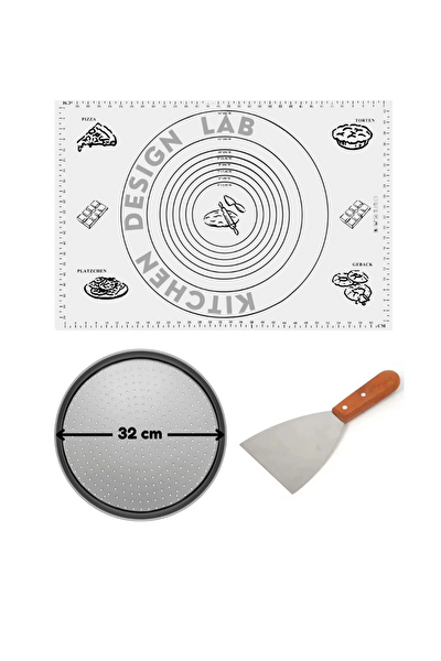Kitchen Design Lab Beyaz Hamur Açma Matı 45 X 65 CM - 28 CM Pizza Tepsisi Ve Ahşap Uzun Saplı Hamur ve Pizza Kesici