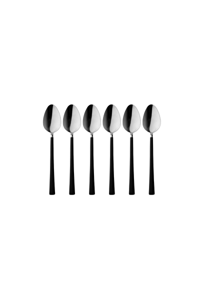 Kitchen Design Lab Paslanmaz Çelik Parlak Gümüş Siyah Saplı Yemek Kaşığı Seti 6 Adet
