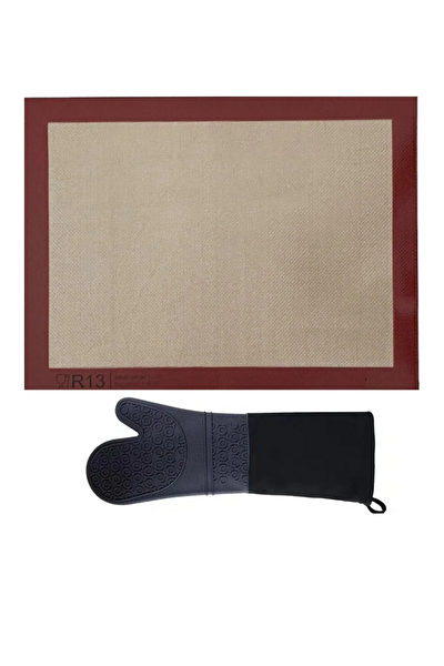 Kitchen Design Lab Yanmaz Yapışmaz Yıkanabilir Pişirme Matı ve Gri Silikon Yanmaz Mutfak Fırın Eldiveni