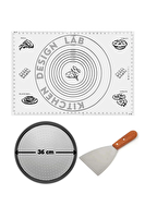 Kitchen Design Lab Beyaz Hamur Açma Matı 45 X 65 CM 36 CM Pizza Tepsisi Ve Ahşap Uzun Saplı Hamur ve Pizza Kesici