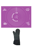 Kitchen Design Lab 45x65 CM Silikon Hamur Açma Matı Ve Gri Silikon Yanmaz Mutfak Fırın Eldiveni 2'li Set Siyah