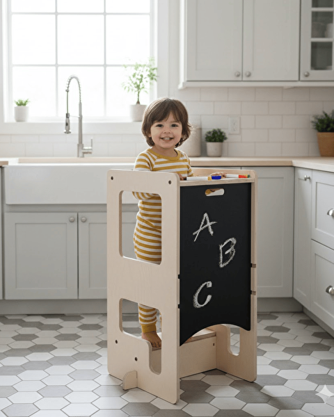 Mamatoyz Flip Natural 3'ü 1 Arada Öğrenme Kulesi - Aktivite Masası - Yazı Tahtası