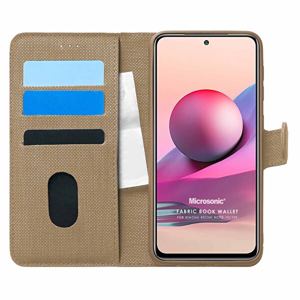 Microsonic Xiaomi Redmi Note 10s Kılıf Fabric Book Wallet Gold