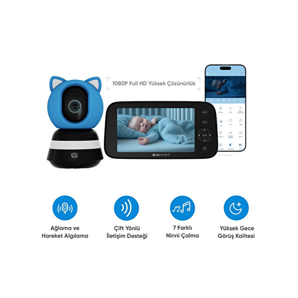 Şımart SM-BIPC Akıllı Bebek Kamerası, Ağlama ve Hareket Algılama, Çift Yönlü Sesli İletişim