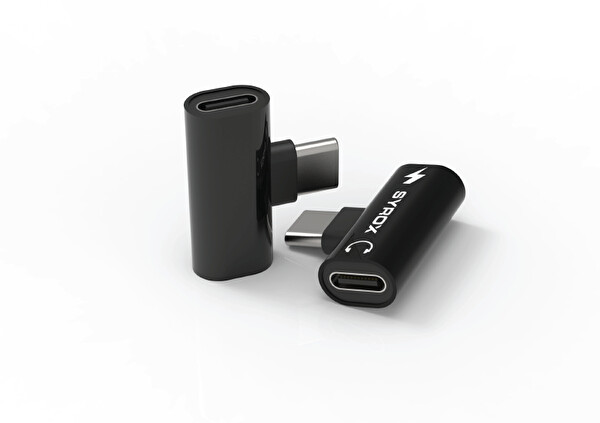 Syrox DT30T-TT Type-C - 2xType-C Mini Ses ve Şarj Ayırıcı Dönüştürücü - Siyah