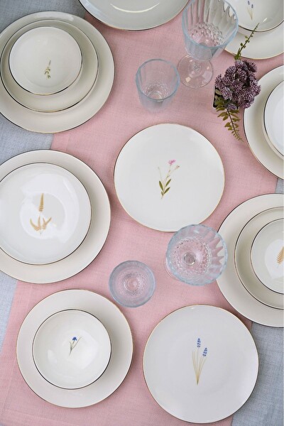 Tabak Evi Porselen Natura Altın Yaldızlı 6 Kişilik 24 Parça Yemek Takımı